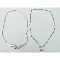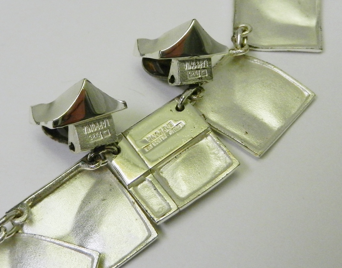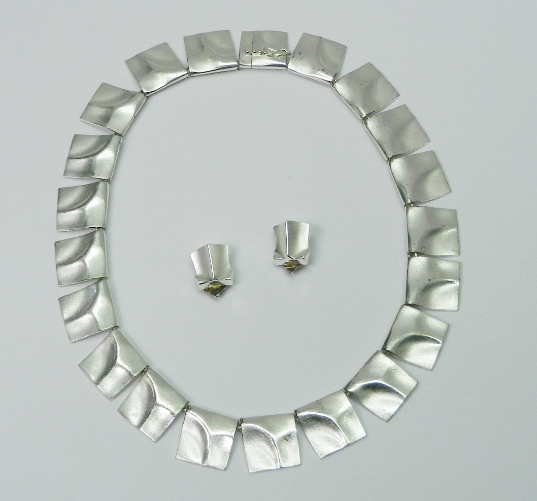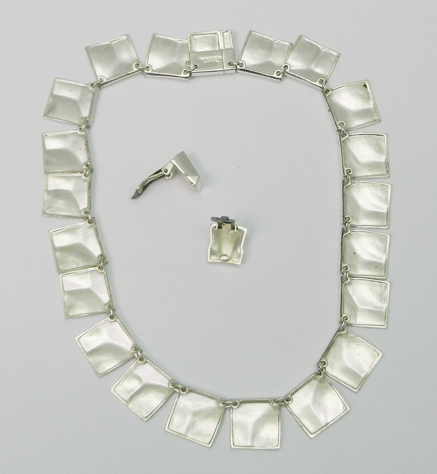 Lapponia / Bjørn Weckström: a sterling silver fringe necklace and matching earrings "Galactic Peaks Space". Necklace 387mm long