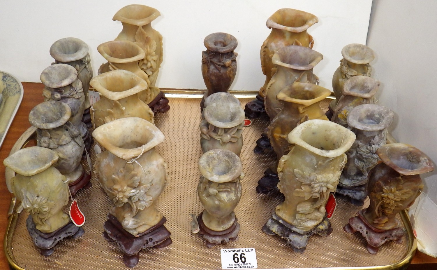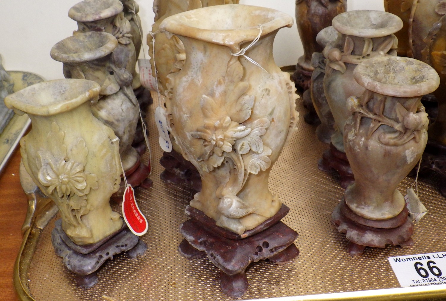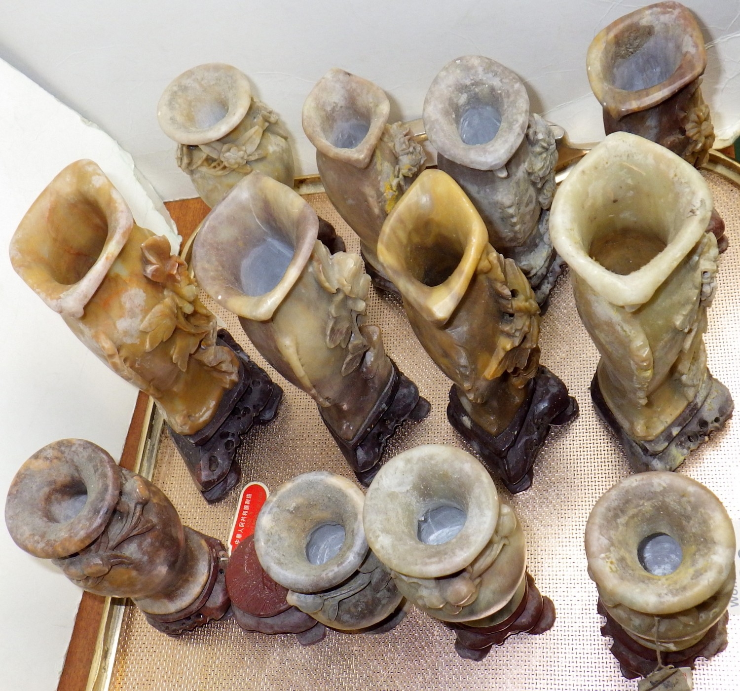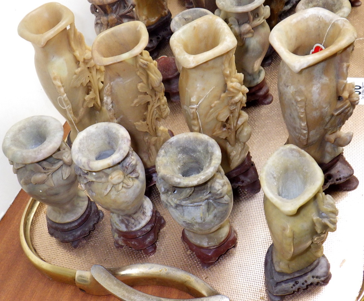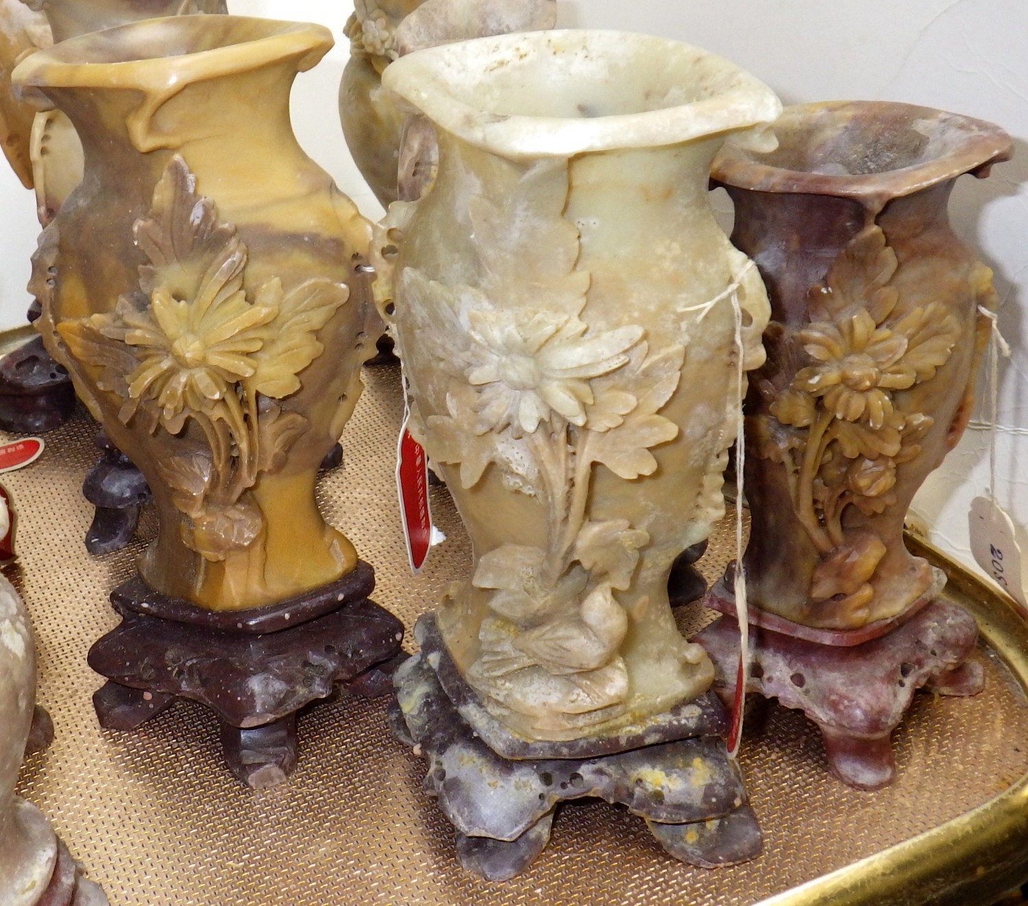 A qty of carved soapstone spill vases