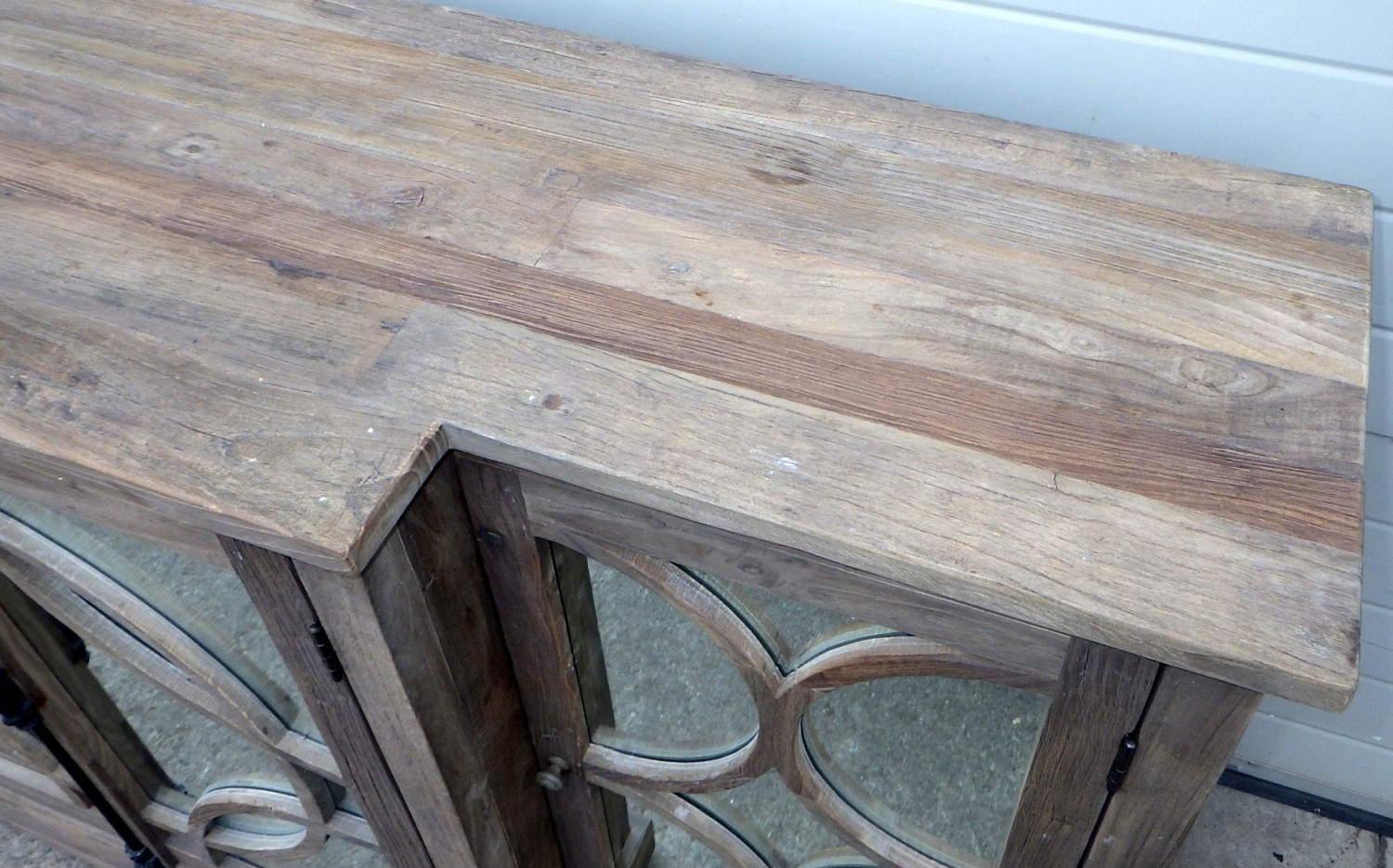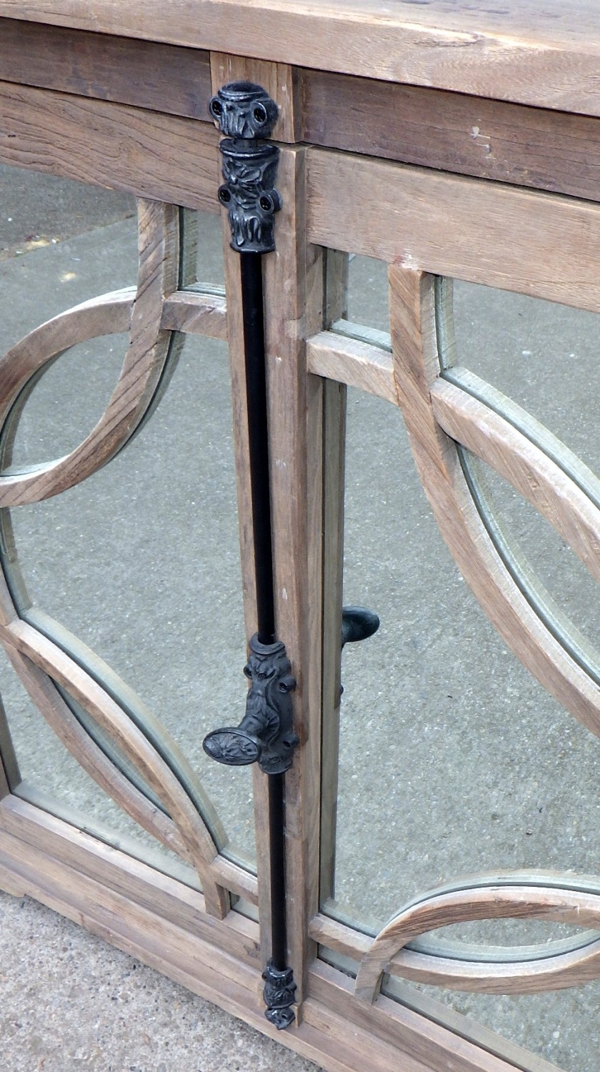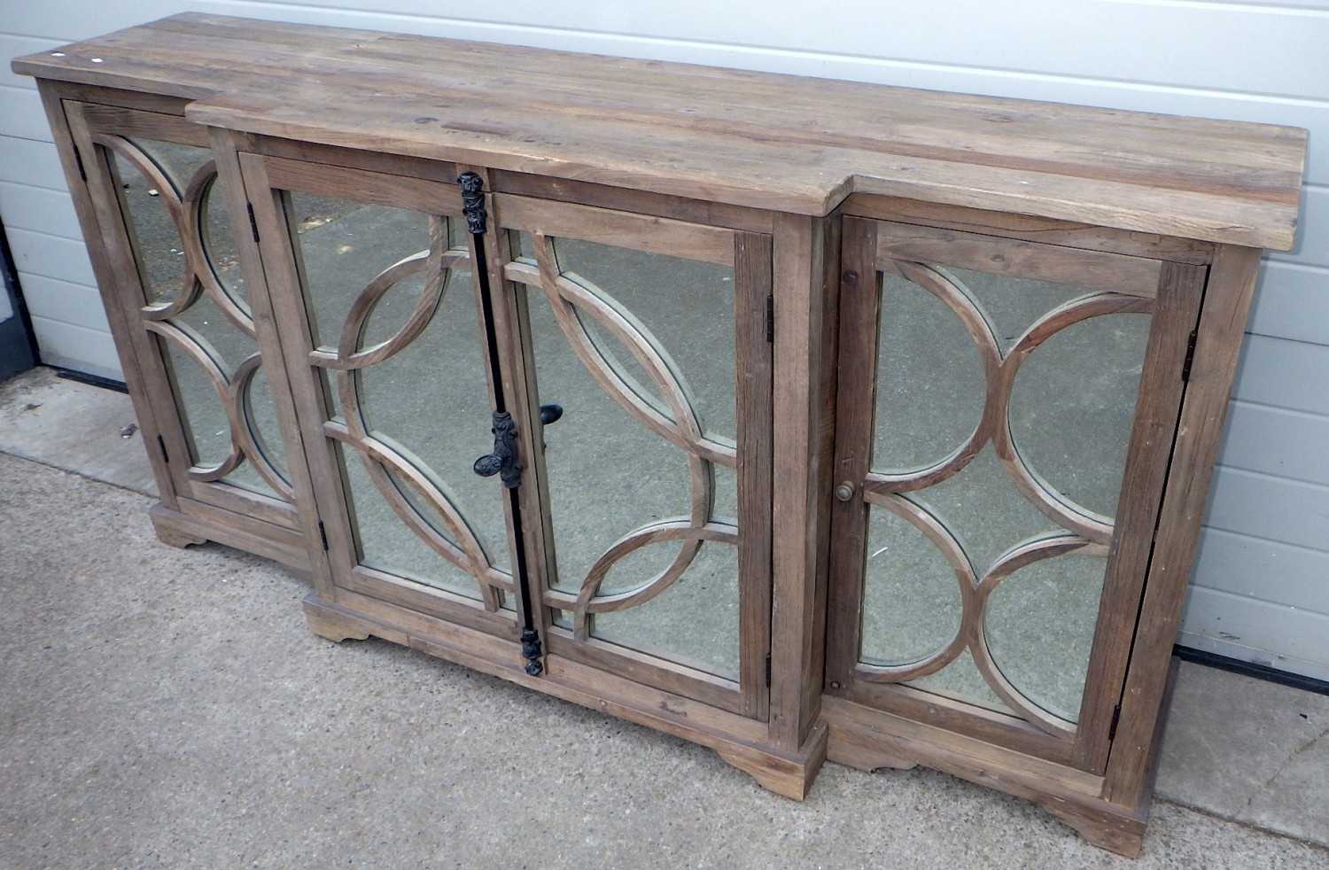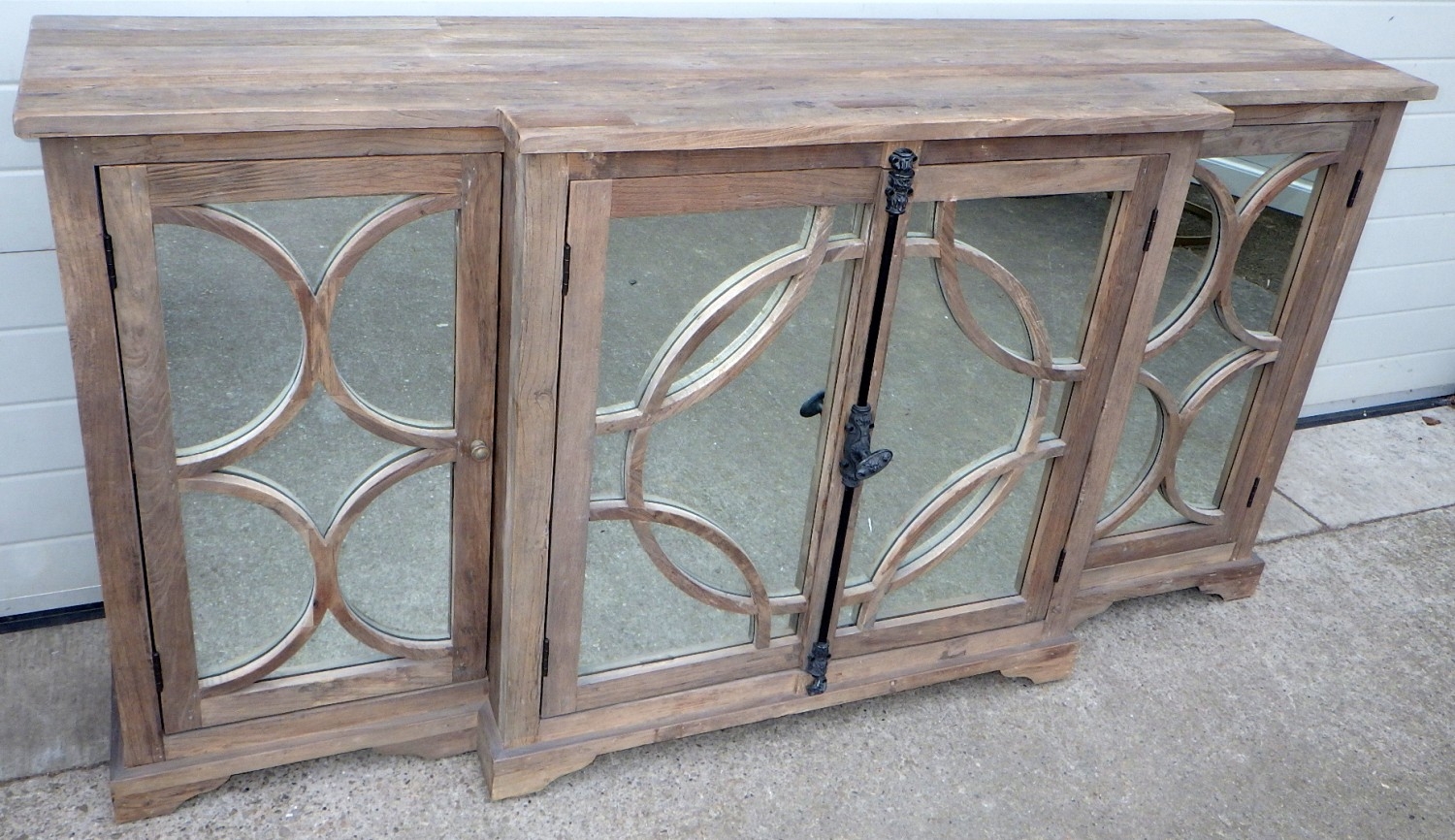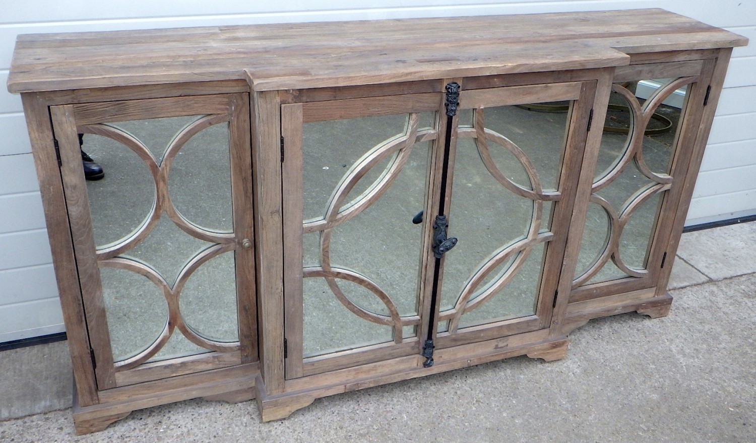 An Oka rustic breakfront cabinet with mirrored doors, 200cm wide