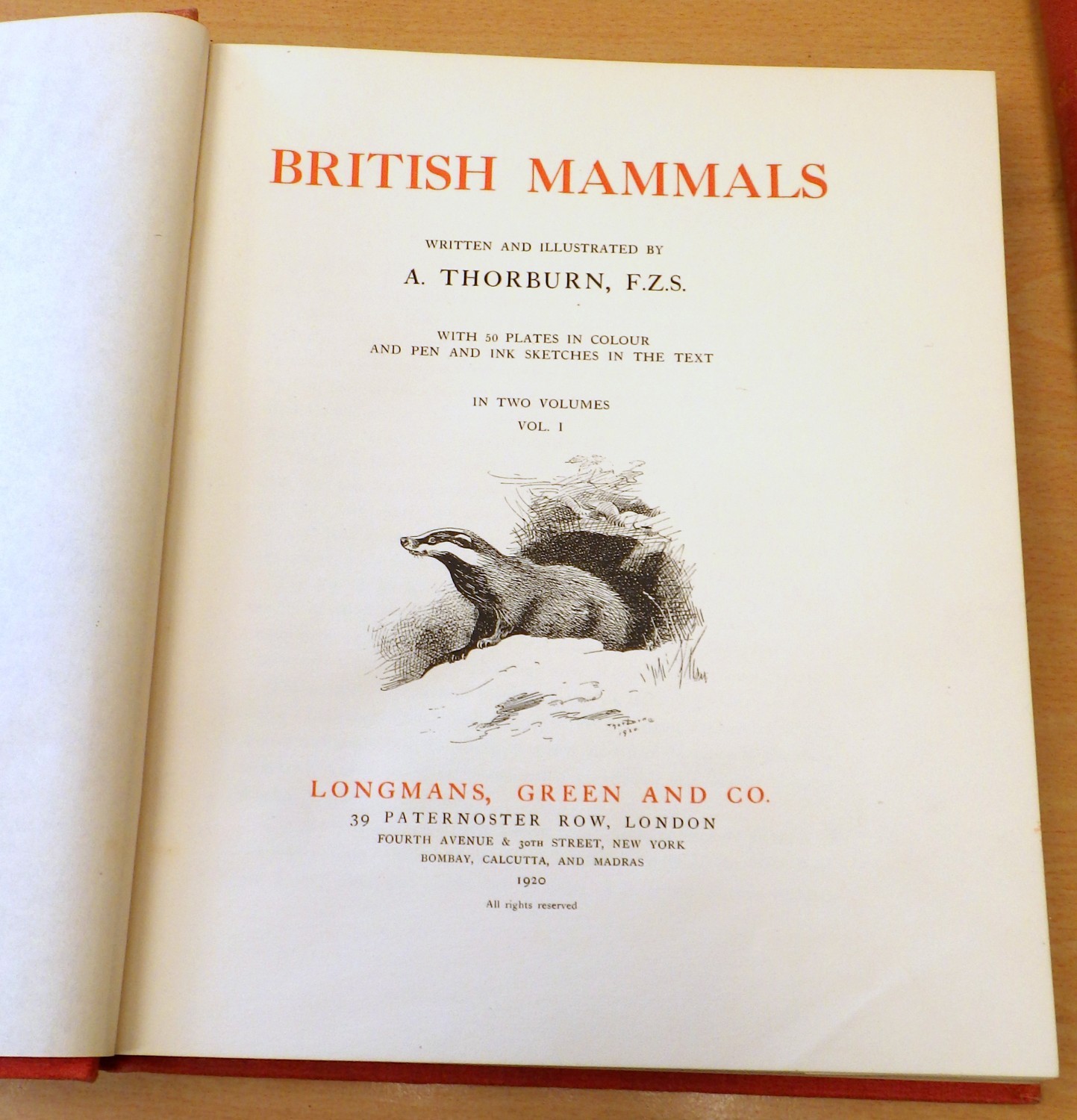 Two volumes of F.W. Frohawk, 'Natural History of British Butterflies' together with the two volume set of A. Thornburn, 'British Mammals' (4)
